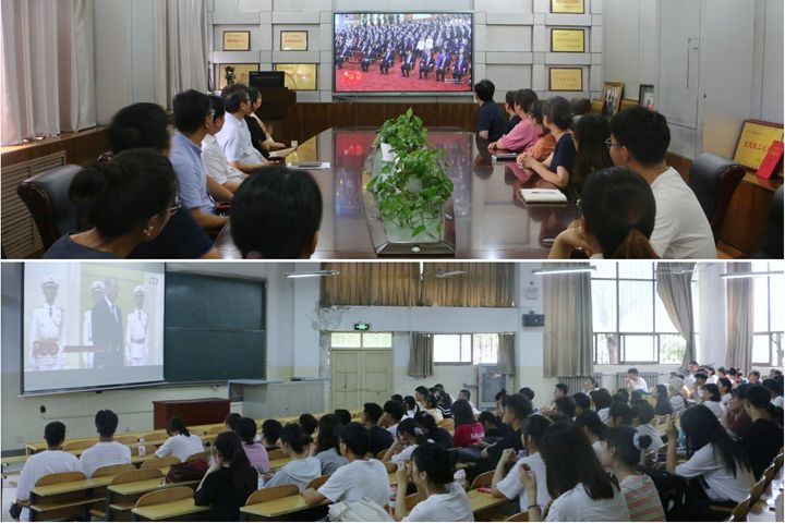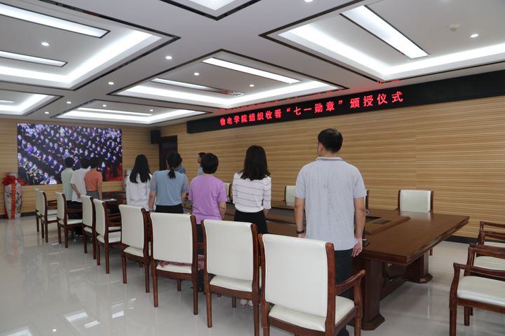 6月29日上午,“七一勋章”颁授仪式在北京人民大会堂隆重举行。根据学校统一要求,物电学院组织部分师生在综合实验楼235会议室集中收看电视直播。