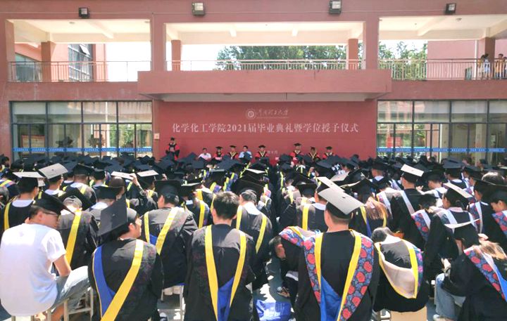 6月21日上午,材料学院在学院楼前举办2021届毕业典礼暨学位授予仪式。该院领导班子成员、各专业教师代表、2021届毕业生参加仪式。仪式由该院党委副书记张建新主持。
