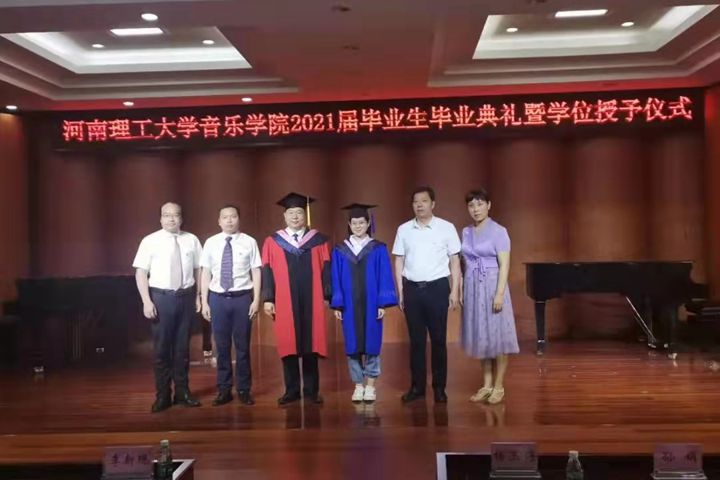 该院院长李新现为优秀毕业生代表颁发毕业证书,并为所有获得硕士学位、学士学位的同学一一拨正流苏、颁发学位证书并合影留念。最后,李新现对即将步入新的人生征程的同学们提出了殷切希望。一是要感恩母校,勇于创新。希望同学们在新的岗位上,传承和发扬学校“明德任责”校训,践行“好学力行”校风和“勤勉求是”学风,勤奋工作,敢于担当,勇于创新,争取在新的岗位上取得更加优异的成绩。二是要感恩时代,接续奋斗。同学们是与新时代同向同行、共同前进的新时代青年,要锤炼品德,明辨是非曲直,矢志追求更有品位的人生;要守正创新,在教学相长中探寻艺术真谛,在服务人民中砥砺从艺初心。三是要感恩祖国,牢记使命。同学们生逢盛世,要始终听党话、感党恩、跟党走,要时刻葆有家国情怀,不断增强做中国人的志气、骨气、底气。不管将来拥有怎样的人生,都不要忘了最初的理想,不要忘了艺术人生的追求,让绚丽的音乐艺术之花为祖国和人民绽放!