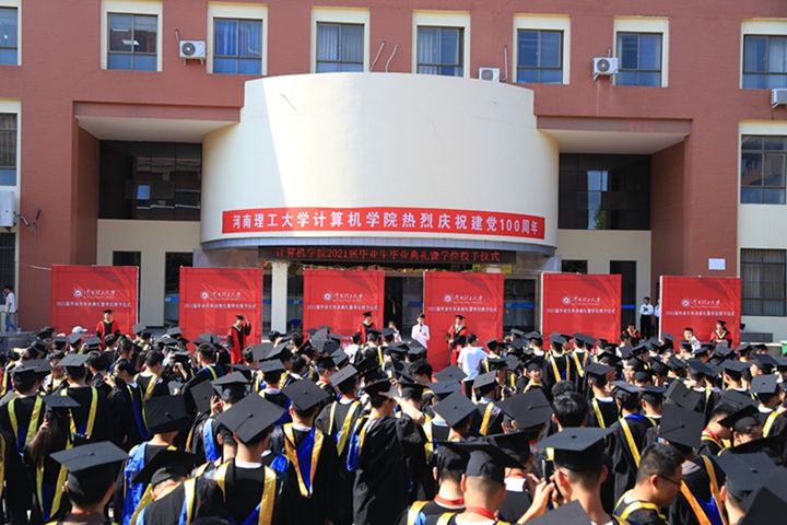最后,毕业典礼在奏唱《河南理工大学校歌》中结束。(数信学院 胡华伟)