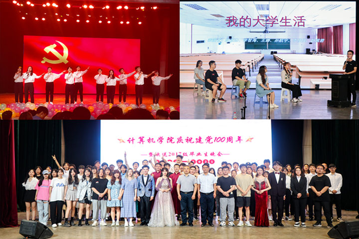 6月17日晚,计算机学院在大学生活动中心小礼堂举办庆祝建党100周年暨欢送2017级毕业生晚会。该院相关负责人及部分老师出席本次晚会。