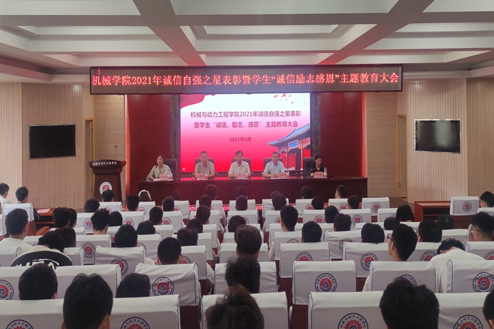 本网讯(通讯员 胡相忠)为表彰先进,激励看齐,6月18日上午,机械学院在学院205会议室举办了2021年度“诚信自强之星”表彰暨学生“诚信、励志、感恩”主题教育大会。学校学生工作部(处)、研究生工作部、宣传部相关负责人,该院学生工作负责人、各年级辅导员、受表彰学生代表及部分申请过高校助学贷款的同学180余人参加了大会。