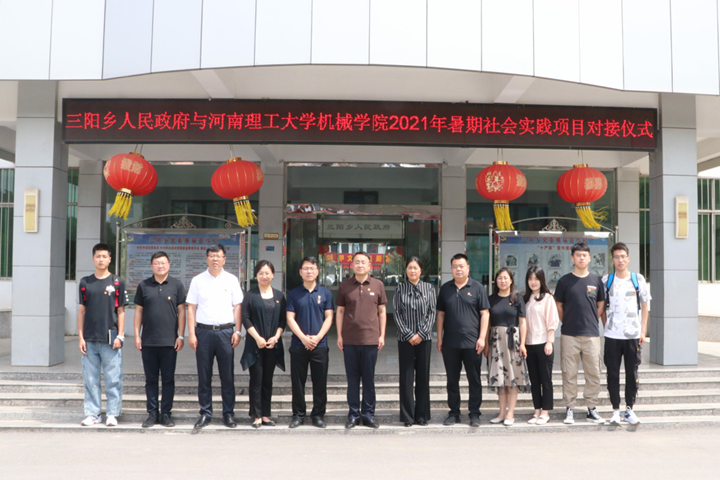 本网讯(通讯员 胡相忠)5月26日上午,机械学院与焦作市武陟县三阳乡人民政府2021年暑期社会实践项目对接仪式在三阳乡人民政府举行。机械学院党委副书记许荣梅,三阳乡党委书记郭松涛、党委副书记李国梁、李冰冰,校团委相关负责人以及机械学院相关师生代表一同参加了对接仪式。