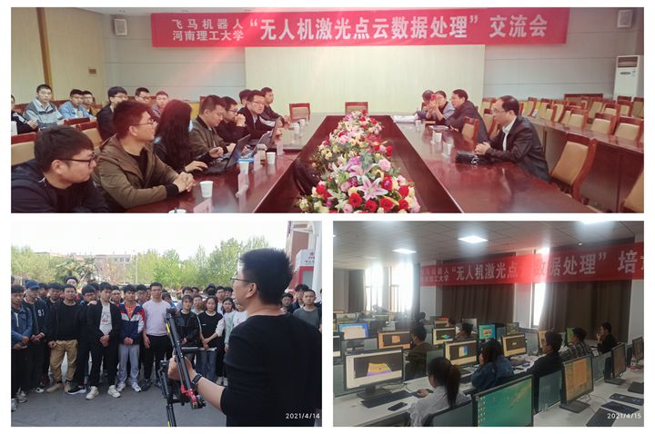 本网讯(通讯员 杜宗亮)测绘学院牢牢把握立德树人根本任务,持续推进校企合作,深化产教协同合力。4月15日至16日,应测绘学院邀请,河南华祥测绘科技有限公司总经理刘志峰,深圳飞马机器人科技有限公司华中区经理郭亚洲、工程师席思远,北京山维科技股份有限公司河南负责人石瑞瑞等一行八人莅院,开展“校企联合培养方案修订”暨“无人机激光雷达数据处理技术”交流。会议分为现场交流、会议报告、无人机测绘演示、激光点云处理培训四个流程。该院相关负责人、全院200余名本硕学生和教师参加此次活动。
