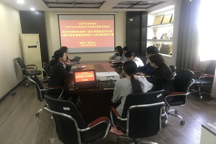 4月28日,国际处(港澳台办)组织全体人员在力行楼226会议室认真学习习近平总书记在清华大学考察时重要讲话精神。