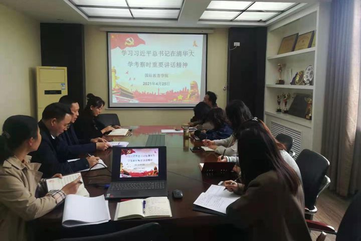 4月25日下午,国际教育学院组织全体教职工在力行楼226会议室集中学习习近平总书记在清华大学考察时重要讲话精神,院长王哲主持会议。
