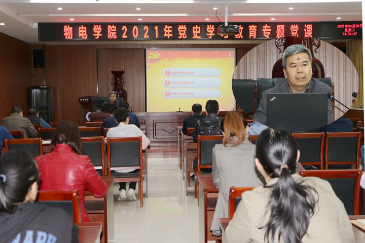 本网讯(通讯员 赵丽 杨圣涛)为扎实推进党史学习教育工作,引导党员学史明理、党增信、学史崇德、学史力行。4月20日下午,物电学院党委书记王书卿以《学党史,担使命,提升精神境界》为题,在该院226会议室,为全体教工上了一堂理论丰富、精彩生动的党史专题党课。