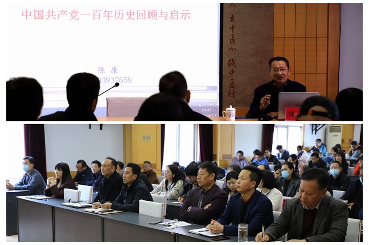 本网讯(通讯员 郭洁)4月13日下午,校党史学习教育专题宣讲专家陈康应邀到医学中专部作题为《辉煌历史 催人奋进 中国共产党一百年历史回顾与启示》党史学习教育专题讲座。讲座由医学中专部党委书记浮新平主持。