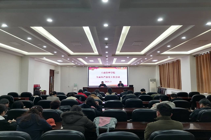 为加强学院党风廉政建设,进一步推进全面从严治党,2021年3月24日,工商管理学院在学院会议室召开全面从严治党工作会议,该院全体教工参加了此次会议。该院党委书记黄定国主持会议。