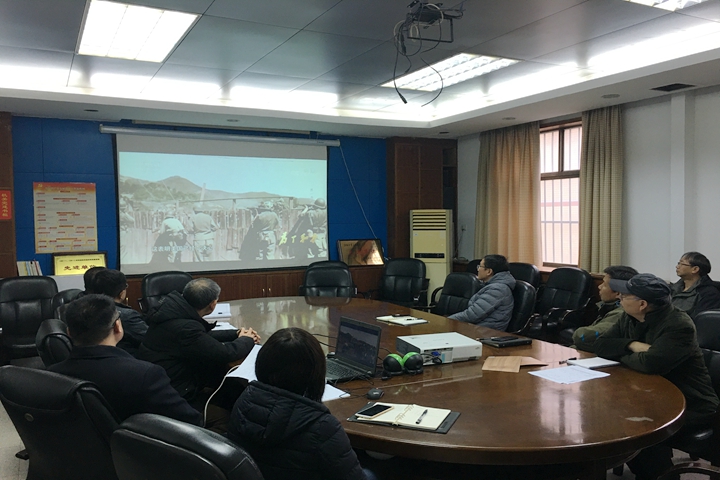 12月1日下午,基建处组织全处职工在会议室收看大型电视纪录片《为了和平》。