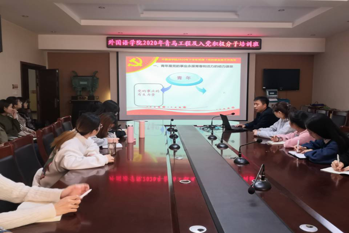 11月1日上午,外国语学院2020年青马工程培训班开班仪式暨入党积极分子培训会议在文综楼311举行,培训主题为“中国共产党与青年学生成长”,该院相关负责人、全体青马班学员以及本期积极分子参加。培训会由外国语学院党委副书记张明主持。
