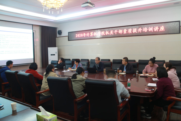 本网讯(通讯员 段志强)为进一步加强学院机关干部队伍建设,提升机关干部的整体素质和履职能力, 10月23日上午,计算机学院在217会议室举行2020年机关干部素质提升培训,该院党委书记朱天明以《提升素质 履职尽责 担当作为》为题进行了授课。