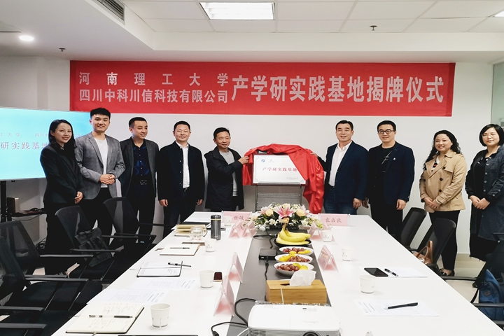 签约仪式上,王世敏对魏峰远一行表示热烈欢迎并简要介绍了公司发展情况。魏峰远与章宗仁共同为产学研实践基地揭牌。魏峰远在致辞中简要介绍了我校办学历史和发展现状,重点介绍了测绘学院教学科研、学科建设等主要情况,并希望以此次产学研合作协议签订为契机,充分发挥学校人才、学科、平台和科研优势,与企业积极开展重大科技项目攻关和人才培养工作,推进科技成果转化,实现发展共赢。袁占良代表学校与中科川信科技有限公司董事长王世敏签订了《河南理工大学四川中科川信科技有限公司产学研合作协议》。