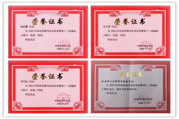 由河南省期刊协会主办的河南期刊编校大赛是我省期刊界的一项权威赛事,旨在全面检验和展示全省期刊编辑的业务技能,提高期刊编辑的业务能力。近年来,学术出版中心大力加强学习型编辑部建设和期刊综合质量建设,狠抓编辑业务能力培养,《河南理工大学学报(自然科学版)》与《河南理工大学学报(社会科学版)》学术水平与编校质量不断提升。此次比赛取得的优异成绩,充分体现了学术出版中心编辑人员的业务能力和职业素养,也体现了我校学术期刊的办刊水平,为我校赢得了荣誉。
