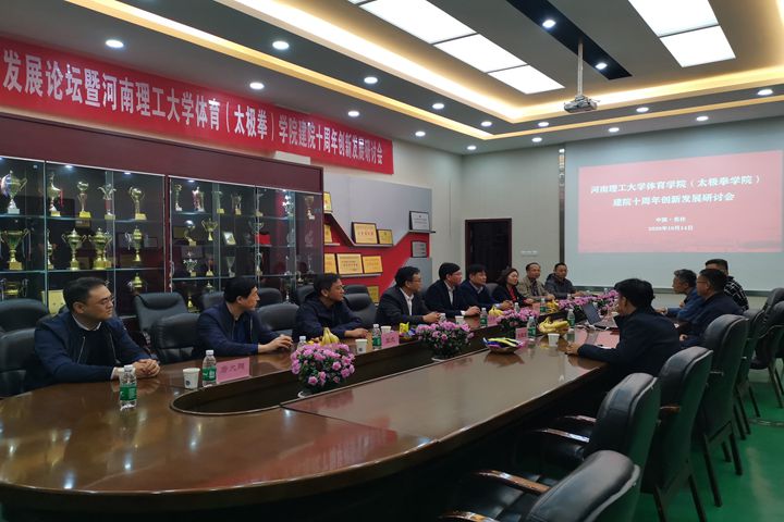 本网讯(通讯员 孙瑞佳)10月14日下午,体育学院(太极拳学院)在新会议室举办建院十周年创新发展研讨会。郑州大学体育学院党委书记武东晓、郑州大学体育学院院长赵子建、河南师范大学体育学院党委书记王允、河南师范大学体育学院院长岳贤锋、河南农业大学体育学院院长管勇生、河南科技大学体育学院院长武笑玲、郑州大学体育学院副院长司红玉、河南农业大学体育学院副院长唐大鹏、河南科技大学体育学院副院长魏烨,以及体育学院(太极拳学院)领导班子成员等参与研讨。研讨会由体育学院(太极拳学院)副院长杨黎明主持。