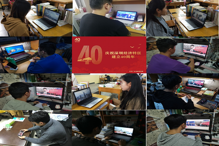 10月14日上午,国际教育学院组织全体教职工在力行楼223A共同收看深圳经济特区建立40周年庆祝大会。