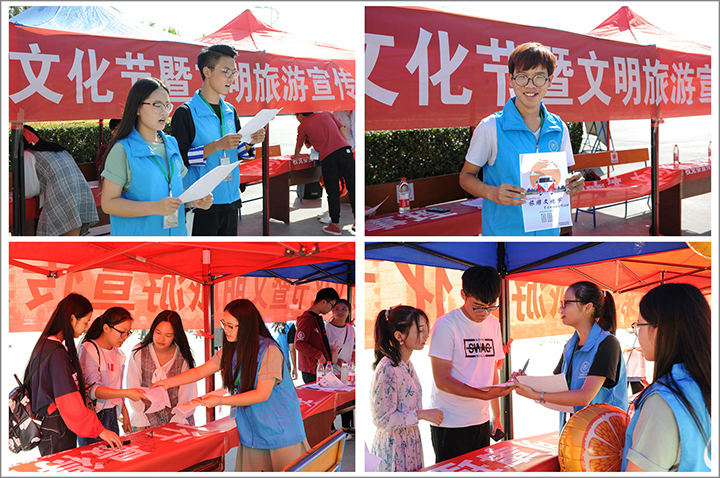 为进一步推进学校精神文明创建工作,引导师生了解旅游常识与法规公约,自觉提升文明素养,树立文明旅游观念,9月22日下午,我校第二届旅游文化节暨文明旅游宣传活动在学苑餐厅广场举办。活动由校文明办主办,工商学院承办,全校师生积极参与。