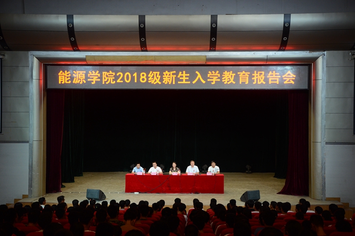 9月7日晚,能源学院在小礼堂召开2018级新生入学教育报告会,学院党委书记王婕,院长郭文兵,党委副书记支光辉,副院长李东印、刘少伟,新生辅导员及全体新生参加会议。会议由支光辉主持,郭文兵做专题报告。
