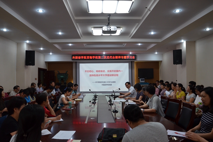 7月14日上午,外国语学院在文综楼311会议室举行贯彻学校第二次党代会精神学习会,全院教职员工参加学习。