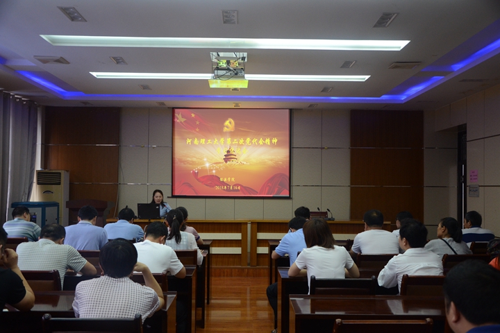 活动中,王婕介绍了我校第二次党代会召开的盛况,带领大家学习了学校党委书记邹友峰代表上一届党委所作的《不忘初心,砥砺奋进,全面开启国内一流特色高水平大学建设新征程》工作报告,并结合自己的学习和理解,对学校第二次党代会的内容和精神进行了传达和详细解读。报告提出了“三步走”的发展战略,明确了“围绕‘一个目标’,突出‘两个一流’,贯彻‘五大理念’,实现‘六大提升’”的基本思路。报告强调,今后5年,我们要紧紧抓住发展机遇,以人才培养为中心,以一流学科建设为引领,以深化综合改革为抓手,打破体制机制束缚,释放办学活力,持续提升学校核心竞争力和综合实力,全面开启国内一流特色高水平大学建设新征程。随后,王婕还传达了中共河南理工大学第一届纪律检查委员会向大会提交的书面工作报告。