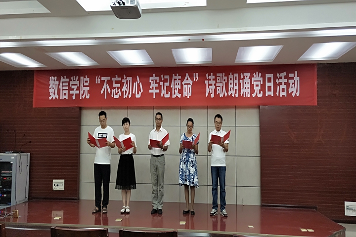 为纪念建党97周年,进一步增强广大党员意识、履行党员义务,7月3日下午,数信学院在3401学术报告厅开展了“不忘初心、牢记使命”为主题的诗歌朗诵活动。该院党委书记成军祥和60余名党员参与了此次活动。
