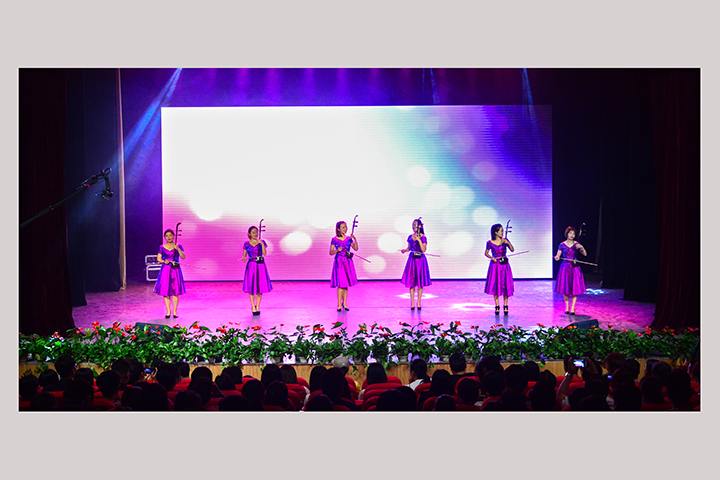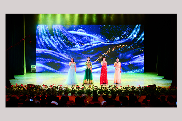 音乐会在激情昂扬的四人合唱《致梦想》中拉开帷幕。个人独唱《祖国慈祥的母亲》唱出了对祖国母亲纯挚的爱。《编花篮》《康定情歌》《中国美》等独具民族特色的经典曲目,引领观众一同感受富有魅力的民族音乐,感悟博大精深的民族文化。二胡重奏《阿拉木汗》活跃风趣,赞美了像鲜花般美丽的姑娘。婉转悠扬的《军营飞来一只百灵》和激情澎湃的《女兵谣》表达了当代青年参军入伍,投身祖国建设的使命感和责任感。男生小合唱《少林少林》一曲高歌一曲情,试述了人们对英雄豪杰的无限崇拜与敬仰。一首《老爸》戳中了人们内心最深处的情感,渐渐将音乐会推向高潮。舞蹈《东归路》将东归之路的寸寸难行一一渲染在舞蹈之中,颂尽重返故土的英雄壮举。美声联唱《喀秋莎》《长江之歌》与流行串烧《凉凉》《等你下课》等歌曲,展现了这两种唱法不同的艺术风格,让大家感受到音乐这门听觉、时间、情感的艺术的美妙。最后,游吟歌与全体师生一同合唱了《飞来的花瓣》《节日欢歌》,共叙真挚的师生情,深深感染了全场观众。
