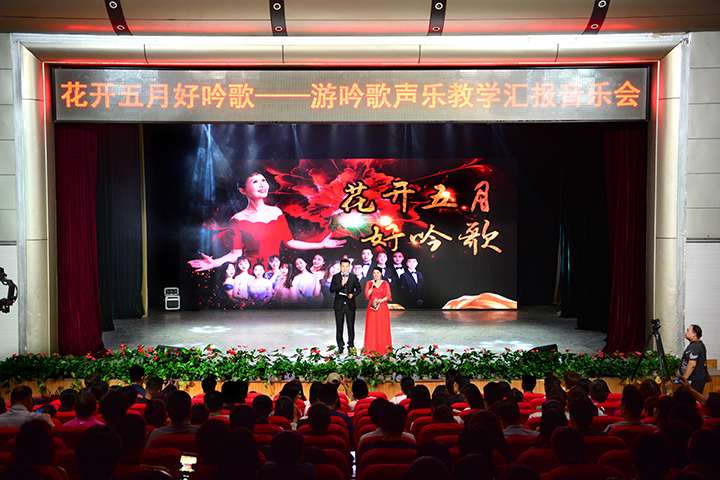 聆听音乐盛宴,共享教学成果。5月27日晚, 花开五月好吟歌——游吟歌声乐教学汇报音乐会在小礼堂举行。校党委书记邹友峰和原副校长王裕清出席,相关职能部门和有关学院负责人及师生们共同聆听了此次音乐会。