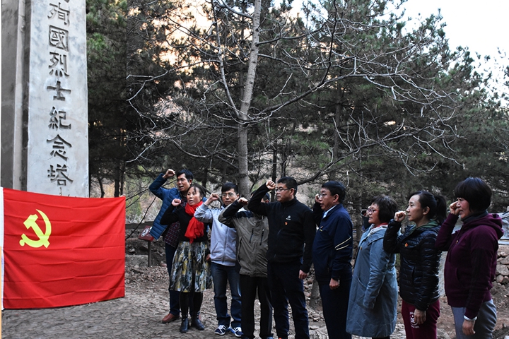 全体党员先后参观了黄崖洞兵工厂旧址、黄崖洞武器存放点原址、黄崖洞保卫战遗址、八路军太行纪念馆,通过观看实景实物和文字史料,真切感受了那段可歌可泣的抗战历史,接受了鲜活的党性教育和革命精神洗礼。在黄崖洞烈士陵园,党员们怀着崇敬的心情,瞻仰了革命烈士纪念碑,面对鲜艳的中国共产党党旗,庄严举起右手,重温入党誓词,一字一句铿锵有力,铮铮誓言久久回荡,提醒每一位党员不忘初心坚定理想信念,牢记使命砥砺奋勇前行。