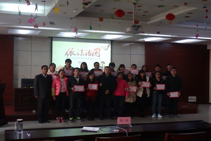 为培养广大学生的法律意识,增强学生的守法、用法能力,真正使法律知识在广大学生中实现学有所用、学以致用,11月18日,数信学院在3401室举办了“知法、懂法、守法、用法”为主题的法制知识竞赛活动。