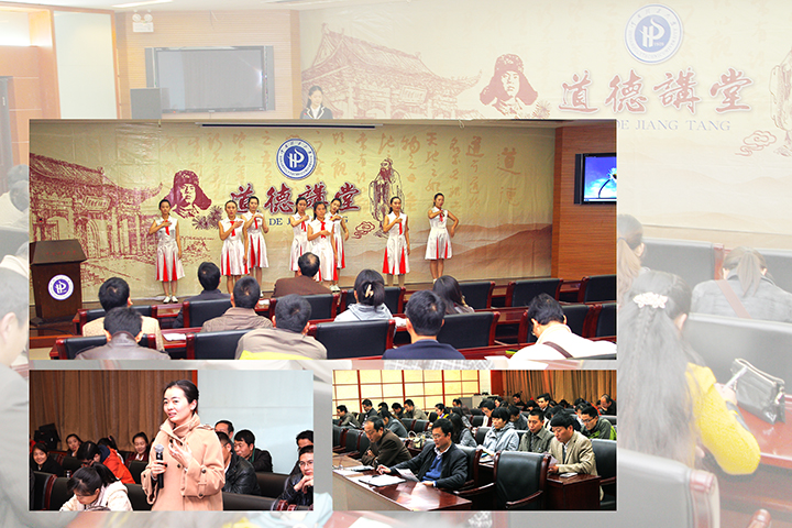 11月11日下午,由校文明办主办、党委宣传部承办的河南理工大学道德讲堂在明德楼一楼会议室举行。土木工程学院100余名教职工共同聆听道德讲堂,接受了道德的洗礼。