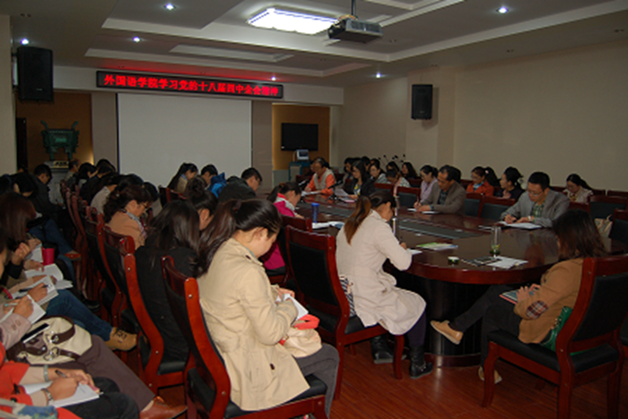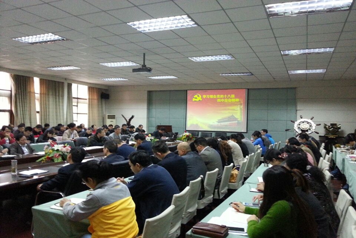 10月28日下午,外国语学院组织全院教职工认真学习了党的十八届四中全会精神,该院党委书记赵昉主持学习。