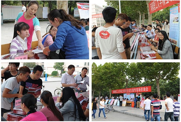 9月23日下午,河南理工大学2015年硕士研究生招生宣传现场咨询活动在明德广场顺利举行,活动由校研究生处主办。研究生处相关负责人和全校20个学院(研究所)负责研究生招生工作的老师以及研究生处招生工作人员参加了本次活动,为考生们提供了最新的考研信息。