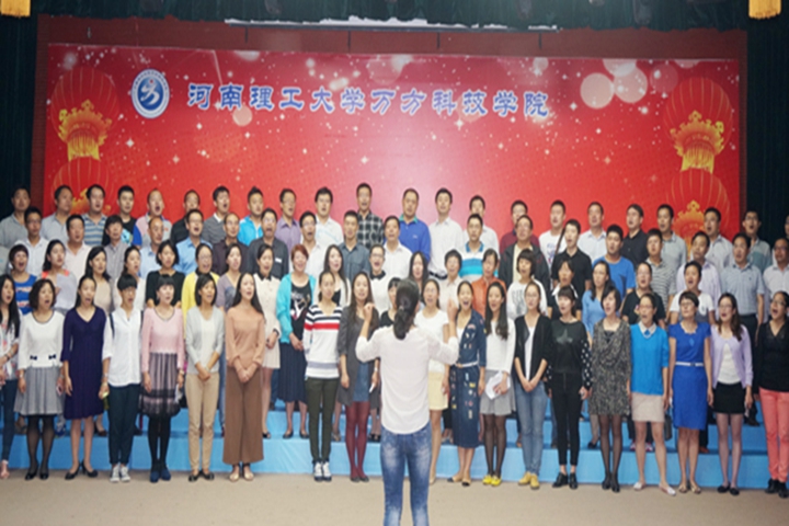 万方学院院长王裕清亲自担任合唱团团长,合唱团全体成员由中层以上干部和教职工文艺活动骨干百余人组成。教学和工作之余,全体团员在学校音乐学院教师马安平的指导下挤出时间刻苦排练,目前正在为2014级迎新晚会和祖国65周年生日献礼紧张准备着节目,由王裕清担任领唱。