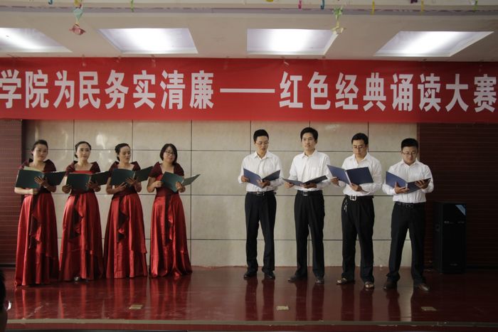 为贯彻落实学校的群众路线教育实践活动精神,数信学院于7月9日下午在该院学术报告厅举办了以“为民,务实,清廉”为主题的红色经典朗诵大赛,该院全体教职员工参加了此次朗诵大赛。