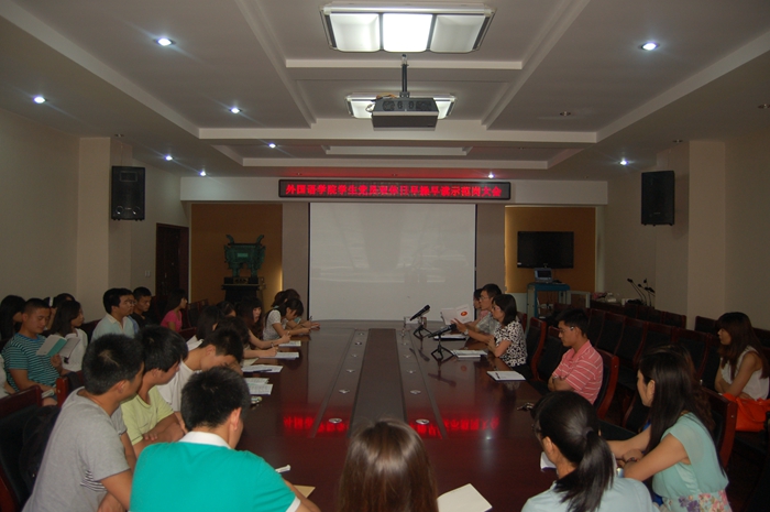 6月25日下午,外国语学院双休日早操早读等六个学生党员示范岗活动启动会议在文科综合楼举行。该院负责人,各个学生党支部基层组织员老师以及全体学生党员参加会议。