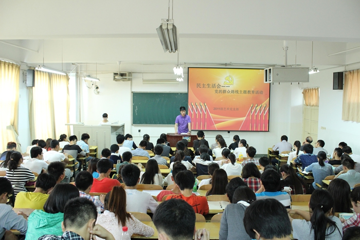 此次观摩活动属于建筑与艺术设计学院2014年学院党校培训的一个培训环节。在该院党委的指导下,观摩活动由2011级艺术设计专业学生党支部具体落实实施。活动是在该学生党支部前期党的群众路线教育实践活动宣传动员、支部群众路线专题学习、听取讲座报告、收看《焦裕禄》等电影、征求非党员学生对学生党员纯洁性先进性意见的基础上开展的。本次支部民主生活会的主要内容是“党的群众路线主线教育背景下的学生党员的纯洁性与先进性”。