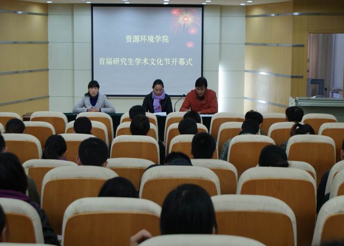 11月22日下午,由资环学院团委、学工办和教科办联合举办的资源环境学院首届“研究生学术文化节”在资环学院地球科学馆影像厅举行开幕式,学院全体研究生参加了开幕式。