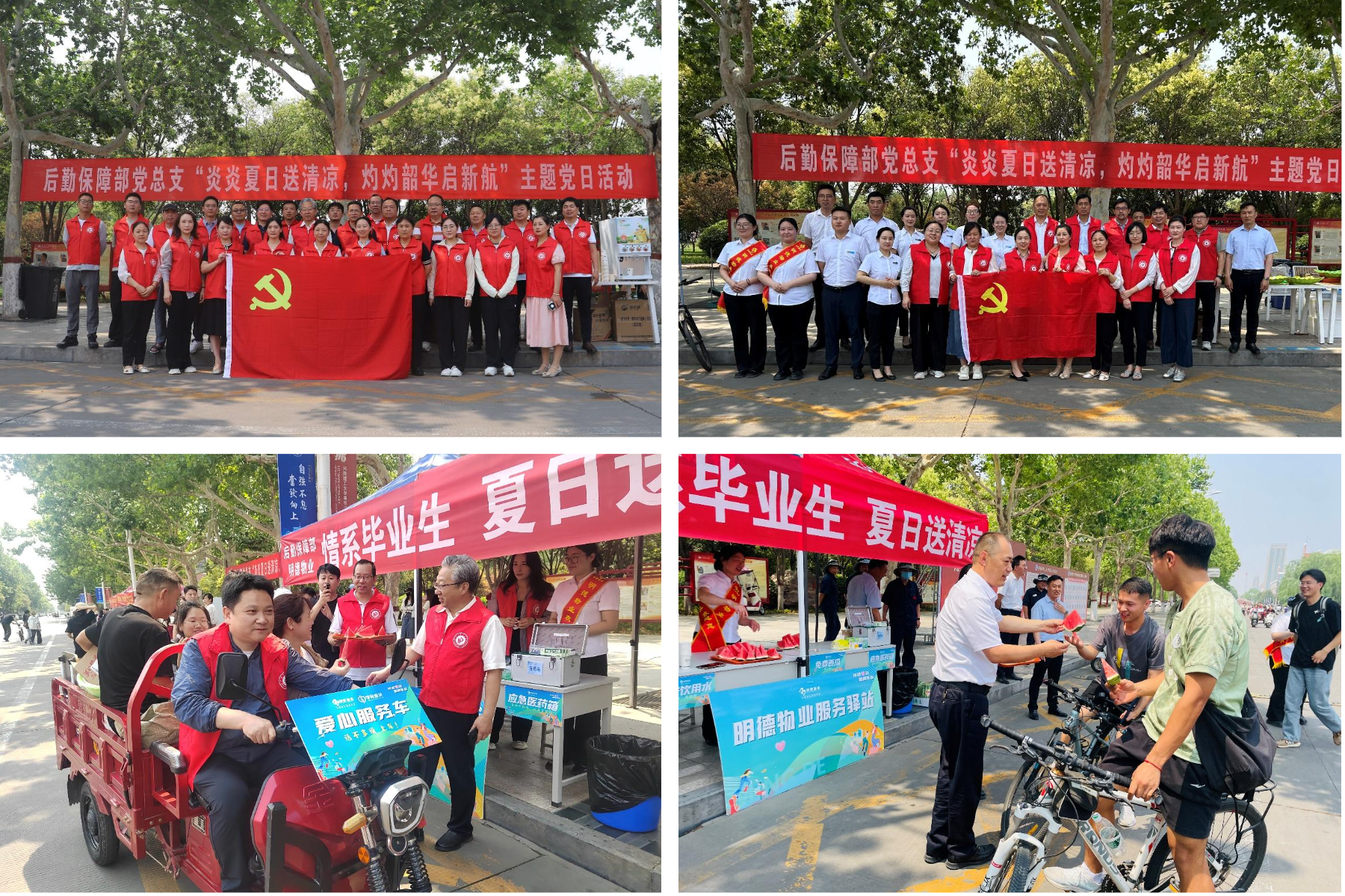 本网讯(通讯员 王萌 刘咪咪)为充分发挥后勤服务育人功能,切实做好服务毕业生的“最后100米”,在2025届毕业生离校之际,后勤保障部党总支组织开展“炎炎夏日送清凉,灼灼韶华启新航”主题党日活动,为即将踏上人生新征程的学子们送上母校后勤人最真挚的关怀与祝福。