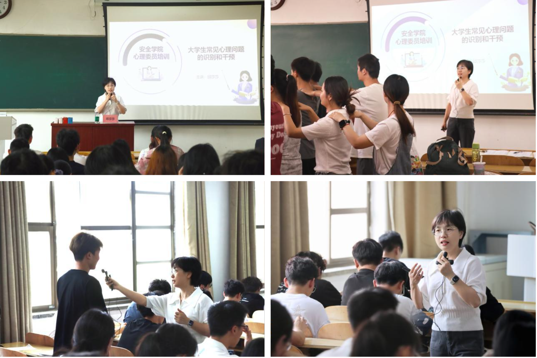 本网讯(通讯员 李姝)为强化心理育人功能,充分发挥班级心理委员和宿舍信息员的积极作用,培育正面积极心态,增强学生心理韧性,5月27日下午,安全学院邀请国家级二级心理咨询师、心理健康教育与咨询中心教师邱莎莎为学院班级心理委员和宿舍信息员进行专题培训,2022级、2023级和2024级心理委员及宿舍信息员100余人参加培训。