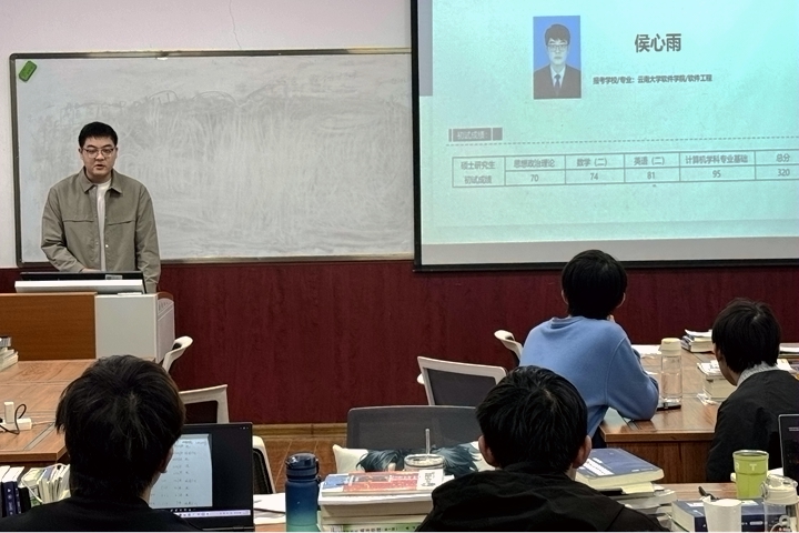 本次交流会邀请21级实验班优秀学生代表侯心雨担任主讲。他结合自身备考经历,从院校选择、复习规划、时间管理、心态调整等方面进行系统讲解,并推荐了高效学习工具和优质网络资源。在互动环节,同学们踊跃提问,围绕专业课复习策略、科研竞赛与考研平衡等问题展开深入交流,现场气氛热烈。