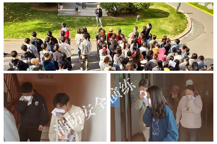 本网讯(通讯员 任美斌)为强化师生消防安全意识,提升火灾应急处置能力,4月1日下午,文法学院联合保卫处在北校区5号、8号公寓楼开展消防疏散演练。本次活动由保卫处葛泮娟老师主持,该院全体在校学生和教师代表积极参加。