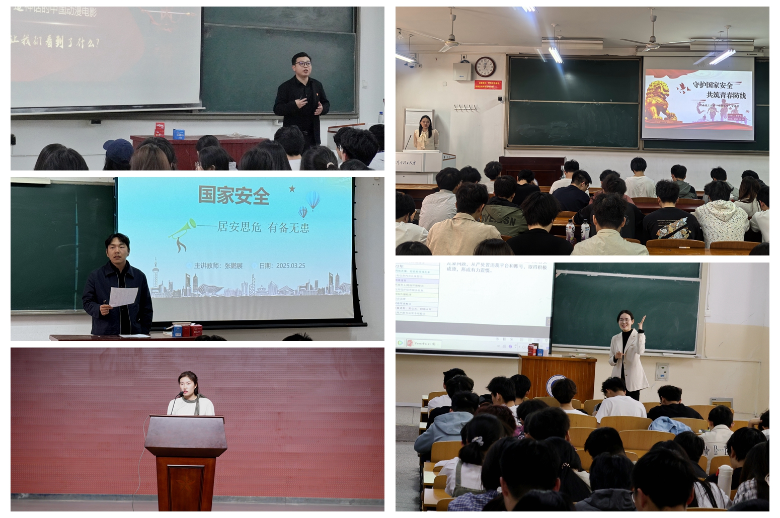 电气学院辅导员张鹏展以《国家安全——居安思危有备无患》为题,从历史与现实维度解析了总体国家安全观内涵,并阐述了传统与新兴安全领域范畴。机械学院辅导员贺梦微以《守护国家安全共筑青春防线》为题,通过多维安全领域案例讲解,教育引导学生不断提高安全意识。机械学院辅导员张亚琼以《依法文明上网争做高素质青年》为题,通过数据分析与典型案例,剖析大学生网络行为现状,并结合《网络安全法》等法律法规,解读了网络暴力、造谣传谣等行为的法律后果。医学院辅导员梅苗苗以《新思想新青年》为题,系统阐释新思想的生成逻辑,并通过辛岳芃等理工优秀学子事迹,激励青年学子在思想旗帜引领下担当时代使命。诚正书院辅导员王前进以《自信之路:新时代青年的历史使命》为题,从道路、理论、制度、文化等四个维度解读了青年使命担当。资环学院辅导员杨澳伟以《炙热之青春绘时代之宏图》为题,以文化基因解码民族精神,引导青年在文化传承中汲取奋进力量。诚正书院辅导员米丽娜以《怀揣报国志践行强国梦》为题,系统梳理了中国留学生“留学报国”精神的历史脉络与时代内涵,并通过解析代际传承案例,强调新时代青年要在专业精进与综合发展中服务国家战略。安全学院辅导员李姝以《赓续中华文脉坚定爱国情怀》为题,以《黑神话:悟空》的文化破圈为例,讲解了传统文化在数字时代的创新传承,激励广大学生要在守正创新中担当文化传承使命。测绘学院辅导员李瑜婷以《厚植家国情怀勇担时代重任》为题,通过中国体育精神和“最美大学生”典型案例等,多维度阐释新时代青年使命担当,激励广大同学在奋进、奉献与创新中践行家国情怀。诚正书院辅导员贾传玲以《传承雷锋精神点亮时代灯塔》为题,系统阐释雷锋精神“五维内核”与时代价值,并通过解析个人、社会、国家发展的辩证关系,激励青年以雷锋精神为坐标,在实现中华民族伟大复兴征程中绽放信仰之光。