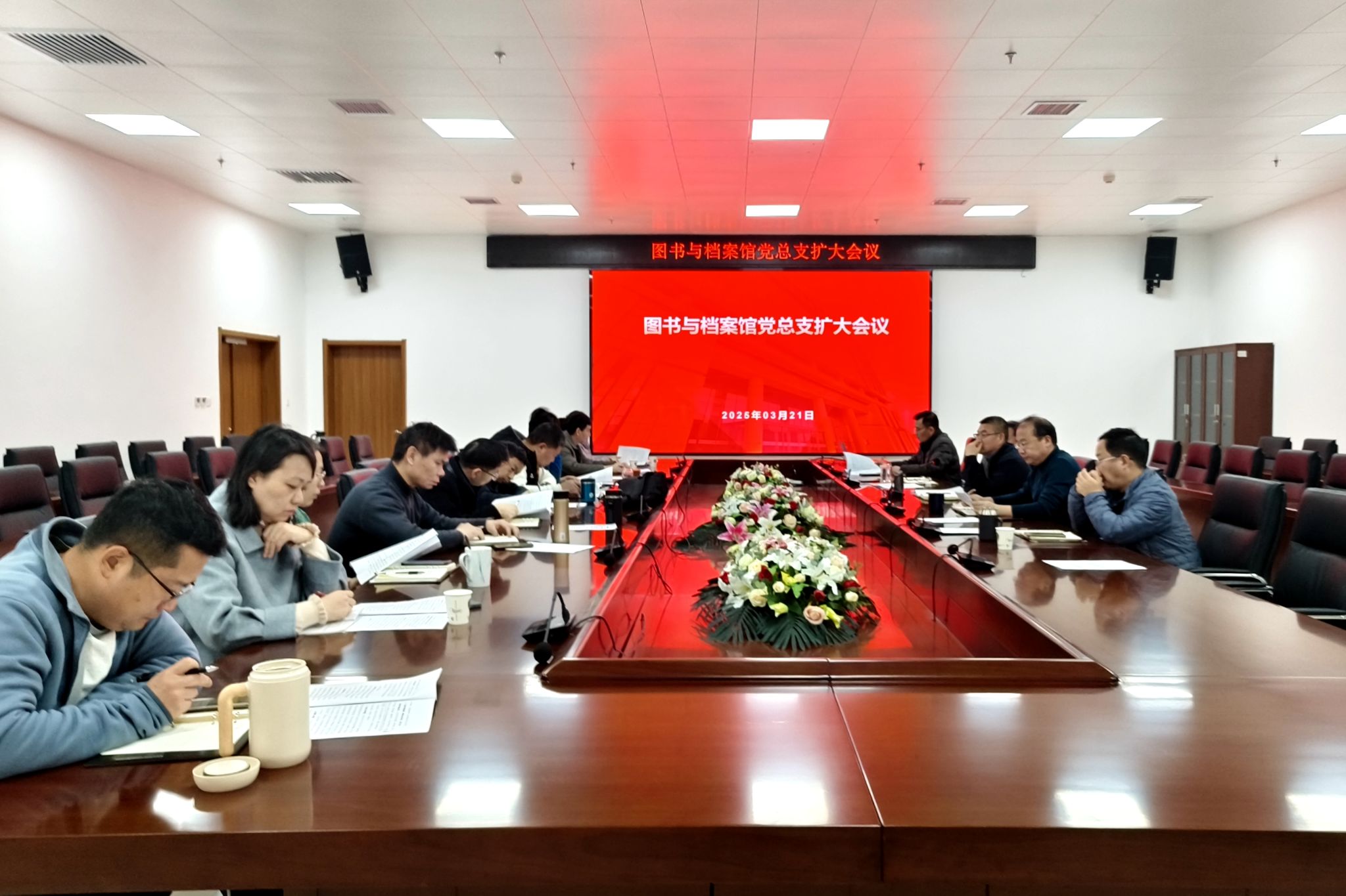 3月21日上午,图书与档案馆在第二图书馆第一会议室召开党总支扩大会议,学习习近平总书记关于深入贯彻中央八项规定精神学习教育重要讲话精神,研究部署深入贯彻中央八项规定精神学习教育工作。图书与档案馆全体处、科级干部、党支部书记参加会议。会议由党总支书记史君锋主持。