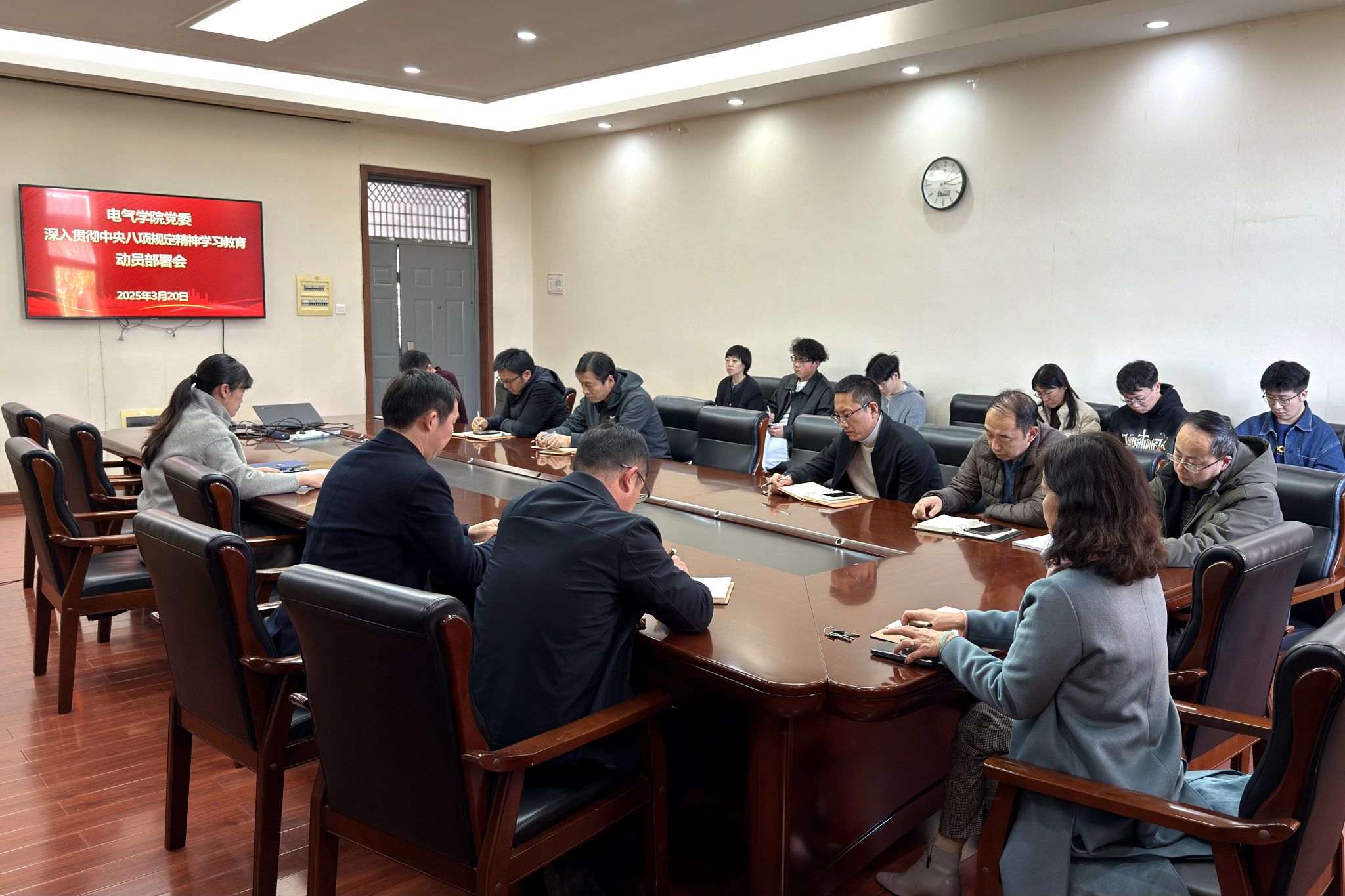 3月20日下午,电气学院在院楼215会议室召开党委扩大会议,安排部署深入贯彻中央八项规定精神学习教育相关工作。该院领导班子成员、党委委员、各党支部书记参加会议。