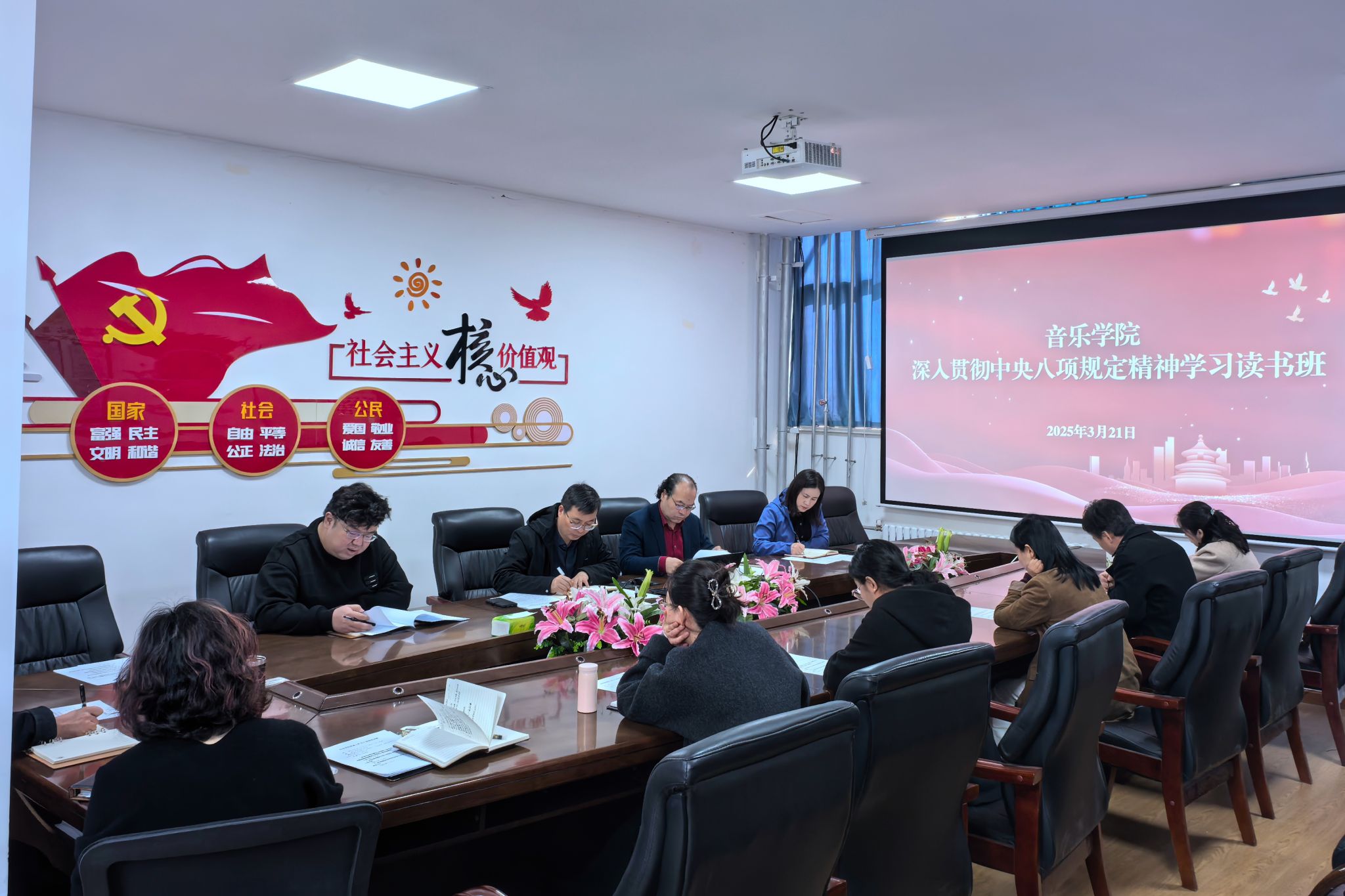 3月21日,音乐学院召开党委扩大会议,传达校党委关于深入贯彻中央八项规定精神学习教育的工作方案,同时按照校党委工作要求,研究部署音乐学院开展深入贯彻中央八项规定精神学习教育工作。该院党委书记贾宝先主持会议。