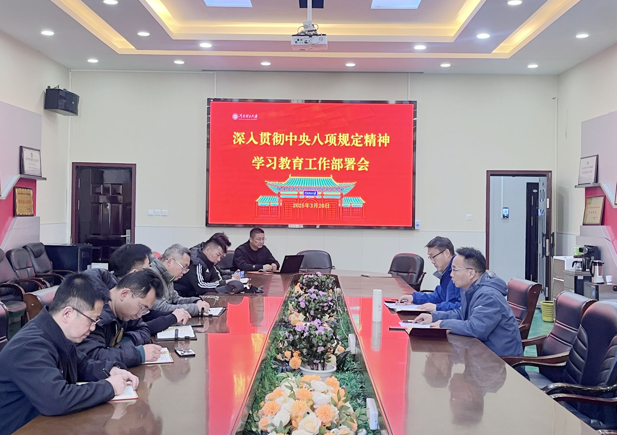 党委书记于拥军指出,在全党开展深入贯彻中央八项规定精神学习教育,是党中央作出的重大决策,是今年党建工作的一项重要政治任务。是贯彻落实党的二十届三中全会部署、巩固深化党纪学习教育成果、常态化推进作风建设的重要举措,是密切党群干群关系、巩固党的执政基础的必然要求,是进一步全面深化改革、推进中国式现代化的有力保障。于拥军要求,必须以严格标准,全面确保学习教育取得实效。班子成员要认真履行“一岗双责”,加强对分管领域、分管支部开展学习教育的督促指导。各党支部要明确责任,密切配合、抓好落实;要统筹安排好时间和精力,做到两手抓、两促进,用推进工作的实际成果检验学习教育成效;要加强正面宣传和舆论引导,及时反映学习教育进展情况和成效经验,培树一批真学真用、真抓实干的先进典型。要及时回应社会关切,确保学习教育健康有序开展。