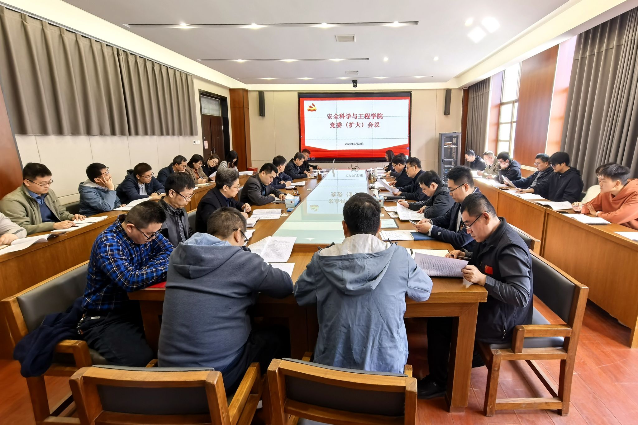 3月22日上午,安全学院在304会议室召开党委(扩大)会议,部署深入贯彻中央八项规定精神学习教育工作,学院领导班子成员、党委委员、各党支部书记、系(所)科室负责人参加会议。