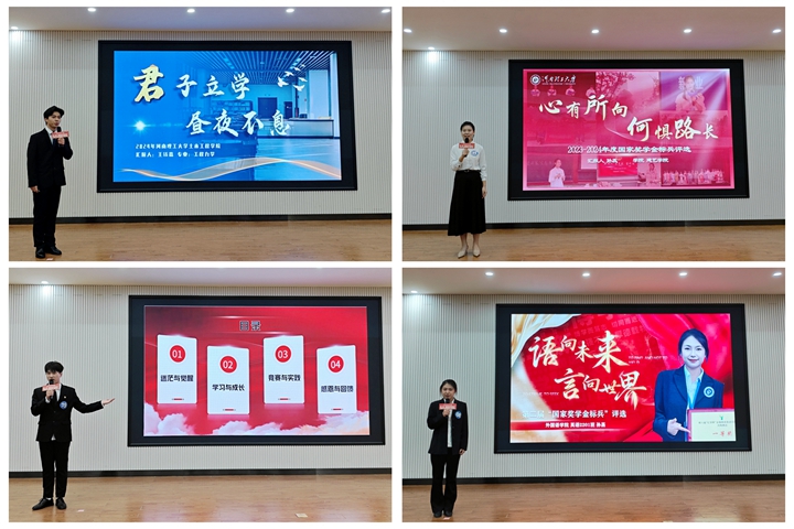 本次活动自启动以来,全校师生广泛关注,经过前期严格遴选,共有来自全校23个学院、书院的35名国家奖学金获得者进入最终展示环节。他们通过表述个人风采、成果事迹以及对资助工作的理解和回报社会愿景,全面展现了理工学子追求卓越、勇于担当的精神风貌。评委们聚焦形象气质、语言表达、内容架构、现场效果、时限控制五大维度综合评分,最终评选出外国语学院孙菡等15名“国家奖学金标兵”暨学生资助宣传大使。活动结束后,同学们纷纷表示要向优秀学长学姐学习,珍惜当下时光,心无旁骛求知问学,砥砺奋进增长才干。