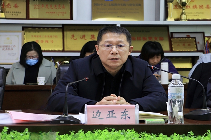 边亚东代表学校致欢迎辞,向与会专家介绍了学校办校历史、办学规模、学科建设和科研进程等方面的基本情况,回顾了国际中文教育硕士学位授权点建设取得的成绩,真诚希望各位专家提出宝贵的意见和建议,为学位点的未来发展出谋划策。