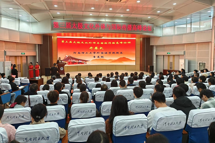 本网讯(通讯员 许亚男)10月19日,由中国外文局中国翻译研究院、中共河南省委外事工作委员会、河南省高等教育学会外语教学研究分会和学校主办的“第三届太极文化外译与国际传播高峰论坛”在力行楼学术报告厅顺利举行。当代中国与世界研究院副院长范大祺、省委外办二级巡视员焦开举、副校长边亚东,以及校职能部门和部分兄弟学院领导、教师、学生参加会议。论坛由外语学院院长李惠敏主持。